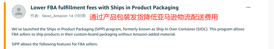 这一计划不仅为加入的卖家提供了FBA运费折扣,具体折扣范围在0.04至1.32美元之间,还额外提供了其他好处。卖家可以定制自己的产品包装,更好地展示品牌形象,同时可以提高物流运输的环境可持续性,减少包装材料的浪费,降低运输空间和碳排放量。